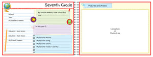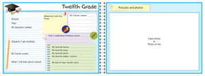 - 34 pages including a profile page with a first day of school photo + a double spread for each school year + last week of school + sports achievements + career aspirations page